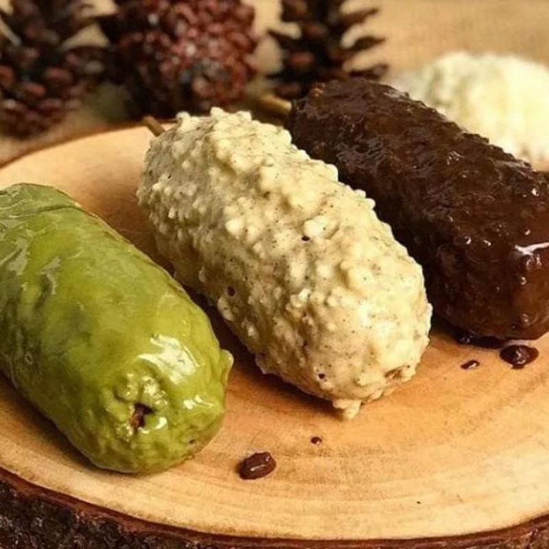 Resep corndog green tea. Masukan tepung terigu maizena vanilli susu bubuk bubuk green tea secara perhalan hingga adonan tercampur rata. 2 butir putih telur. Es batu serut secukupnya.